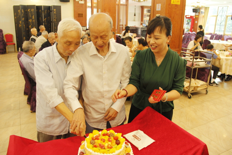 随后,大家一起为今年满70、80、90岁生日的老寿星唱生日歌、切蛋糕,为寿星们献上了生日红包,将活动气氛推向了高潮。