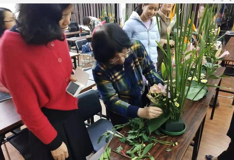 活动伊始,唐老师由浅入深,从理论到实践给学员们进行授课,耐心地为大家讲解插花步骤及注意细节,并亲自做好示范。活动现场轻松欢快,充满着早春的气息,女老师们在花香浸染间,享受着悠然与闲适。