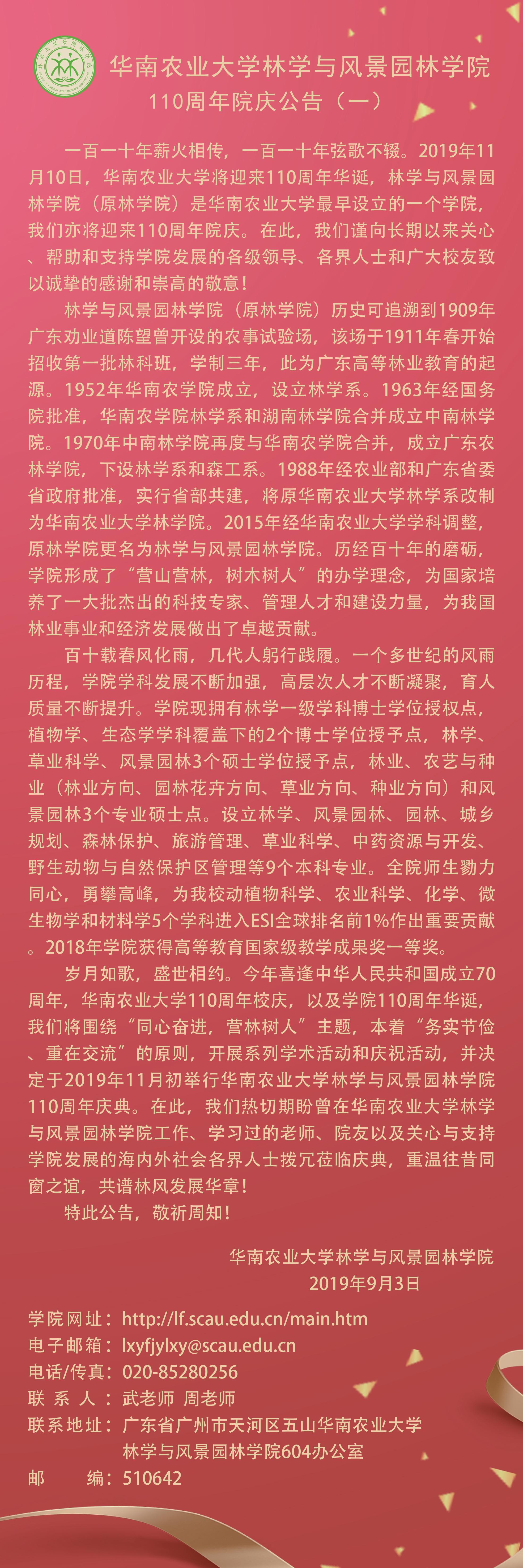 华南农业大学59859cc威尼斯官网110周年院庆公告(一)