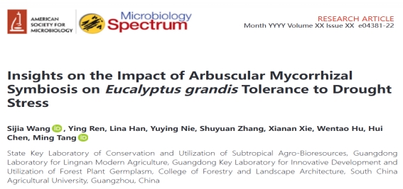 该团队在Microbiology Spectrum期刊上发表了题为“Insights on the impact of arbuscular mycorrhizal symbiosis on Eucalyptus grandis tolerance to drought stress”的研究论文。该论文深入探讨了AM真菌异形根孢囊霉(Rhizophagus irregularis)对巨桉(Eucalyptus grandis)幼苗生长的影响,从生理和分子层面阐明了AM真菌共生在巨桉应对干旱胁迫中的积极作用,为AM真菌增强农林抗旱能力提供理论依据。