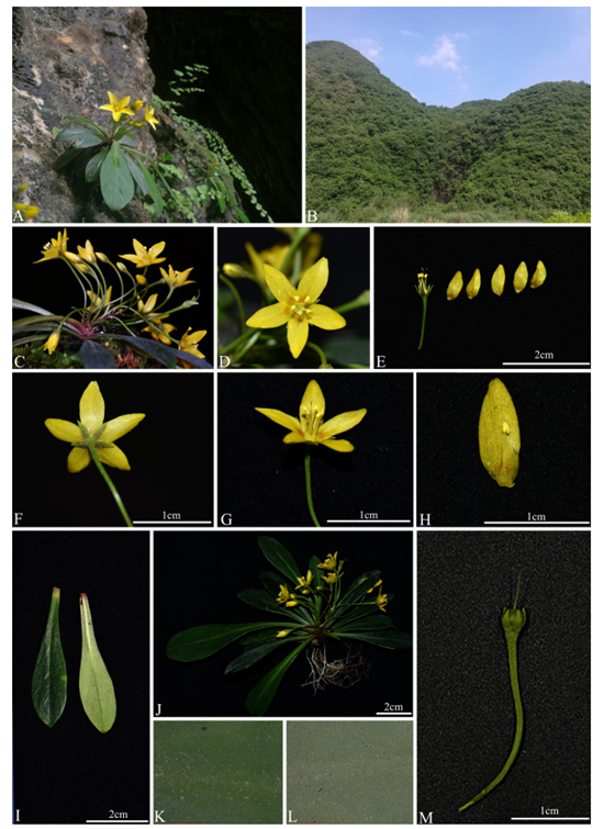 唐光大老师在广东南岭石灰岩溶洞发现的过路黄属新种——大桥过路黄Lysimachia daqiaoensis
