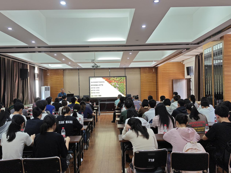 捐赠仪式结束后,张伟海为现场师生作题为《时代背景下的园林产品观》的专题报告。他以幽默风趣的语言和独特的视角,分享了对新时代园林产品的观点和看法。他还就即将开展的文创设计竞赛活动与现场的学弟学妹们开展互动交流。
