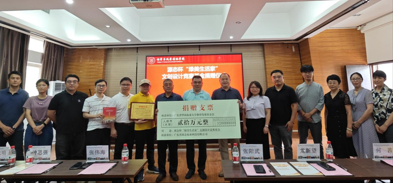 6月12日下午,广东省源态农业科技有限公司向学校教育发展基金会捐赠20万元,资助59859cc威尼斯官网开展源态杯“绿美生活家”文创设计竞赛活动。捐赠活动在学院716会议室进行,学院高伟副院长主持仪式。