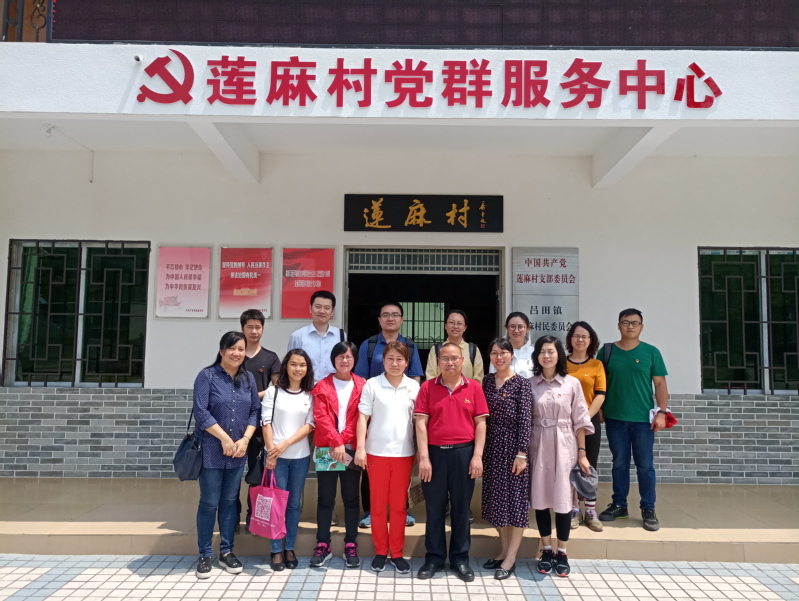 (教工党支部及教研室成员与村委在莲麻村委会内合照)
