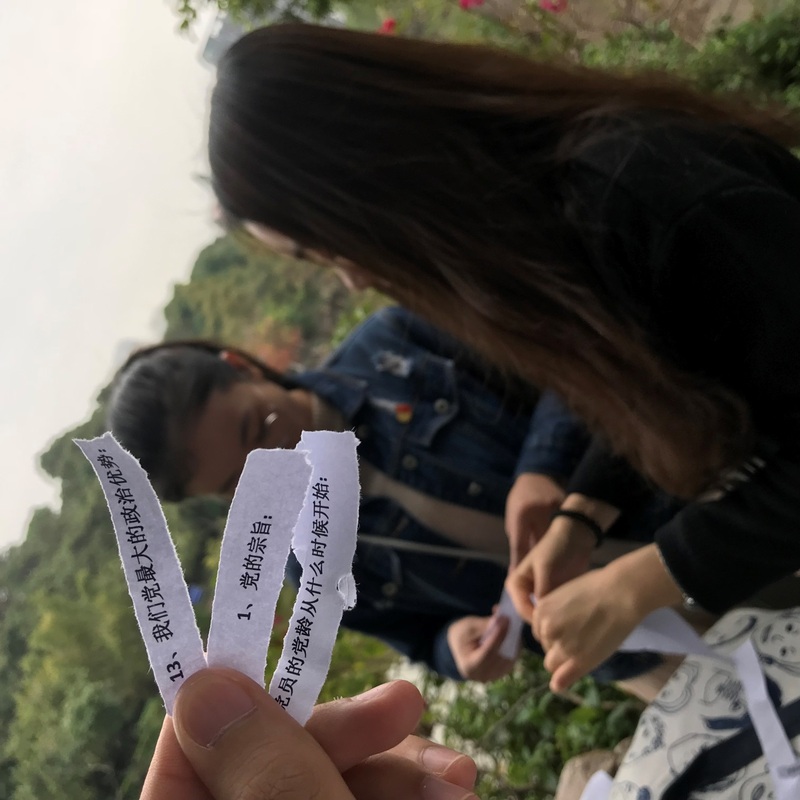 随后,在休息区举行游园与党务知识有奖竞赛活动。知识竞赛活动较好的帮助大家对此次参观活动进行了梳理总结,也加强了党务知识的学习。经过了激烈的竞赛,赖铭婕、罗漪杨、庞兴宸同学获得了冠亚季军,奖品为华农纪念品。知识竞赛活动较好的调动了大家的学习积极性,以后可以更加多样的形式进行此类活动。