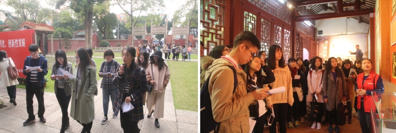 上午九点左右,学员们来到了农讲所。已是入冬的花城上空刮着丝丝料峭的风,然而学员们的热情丝毫不为这点寒意所动,一到农讲所,学员们迅速找到自己所在的小组,有序地进入所内参观。拾级而上,学员们首先看到的是对讲习所选址、发展历史等的一系列展览介绍。在展览第二部分,学员们了解到了一系列近代的革命人士和革命活动。一张张老照片,一件件文史资料,都诠释了革命先烈们为了崇高的理想、为了国家和人民前赴后继、不畏生死的事迹,展现了近代历史上斑斓壮阔的革命图景。随后学员们还参观了先辈们使用过的器具,他们深为先辈们艰苦朴素的作风折服,纷纷表示要继承发扬这种吃苦耐劳的精神。