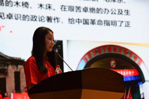 而李雪文和谢晓雯同学分别从“探访旧址,追寻红色印记”和“品位经典,传承红色基因”两个方面分享了延安之行中,她们在西北局革命纪念馆,革命圣地“宝塔山”,杨家祠地参观走访的所听所见,所想所悟。