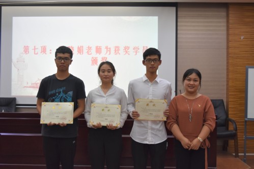 观赏表演过后,孔老师饱含感动与欣慰之情,对本次会议进行了总结与点评。她指出,这次的培训活动的目的就是让学员们在思想和行动上成长,从而进一步向党组织靠拢。同时希望学员们能够成为风向标,用实际行动感染周围的同学,鼓励更多人加入党组织。最后,孔老师为获奖小组进行了颁奖及结业礼物的分发。