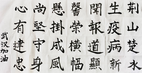 (书法“武汉加油” 黄怡欣 16级城乡规划1班)
