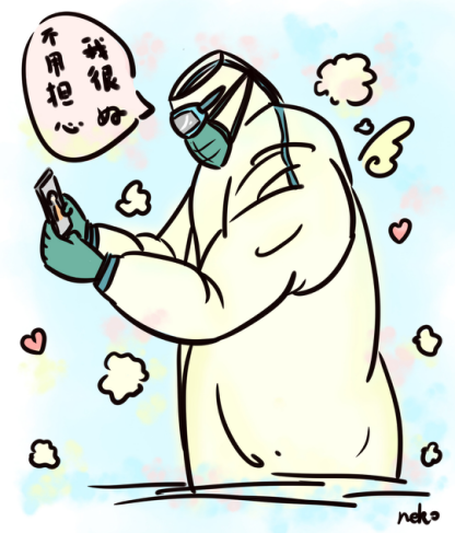身着隔离服,你们拥有最挺拔的身板;戴上护目镜,看见你们最美的容颜。因为有你们,我们有着必胜的信念。阴霾过后,等你们回家!