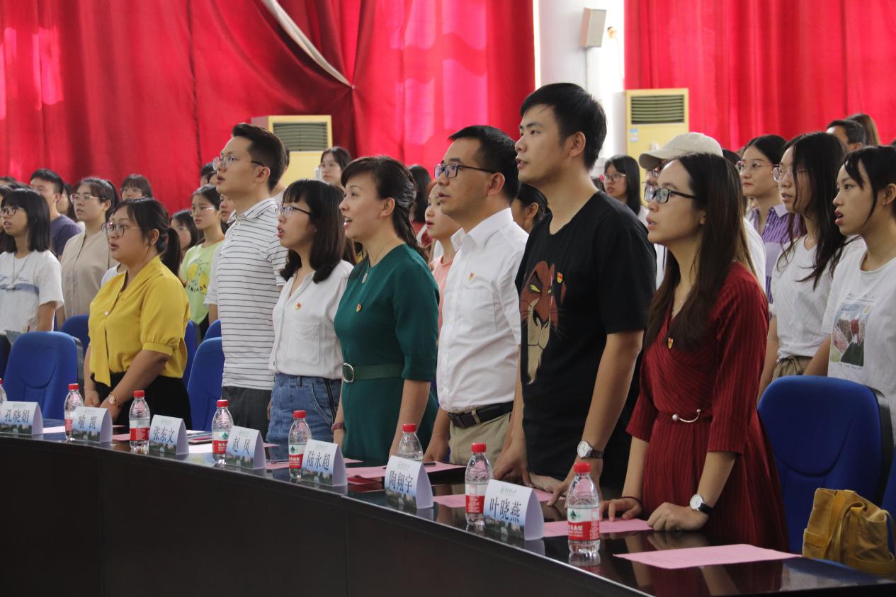 奏唱国际歌后,赵凤书记做动员讲话。她指出,在新中国成立70周年的背景下,入党是一件光荣神圣的事,学员们要全面、深刻、系统地了解祖国和党,对中国特色社会主义道路要有深入全面的认识;要积极面对组织的考验,努力让自己变得更优秀。她对学员们提出了三点要求:一是要不忘初心,牢记使命,端正入党动机,谨记入党初衷,并在培训过程中让自己的初心更加坚定。二是要树立先锋模范意识,在行动上积极向党组织靠拢,在学习和工作等方面,以党员的标准严格要求自己。三是要遵守培训规范,加强组织纪律性,认真做好课堂笔记,及时总结写好思想汇报。她希望学员们在本期培训班能够学有所成,并以实际行动争取早日入党。