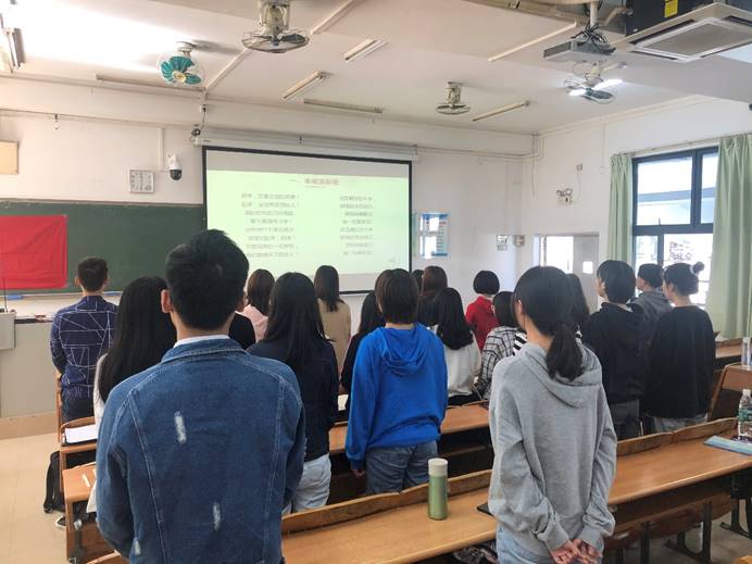 活动当天,专题党课正式拉开序幕。第一部分,全体党员起立奏唱国际歌,“起来,饥寒交迫的奴隶…”熟悉而又庄严的歌词和旋律仍回荡在耳旁,在党课上奏唱了无数次的国际歌,全体党员同志们也熟记于心,顿悟于身。