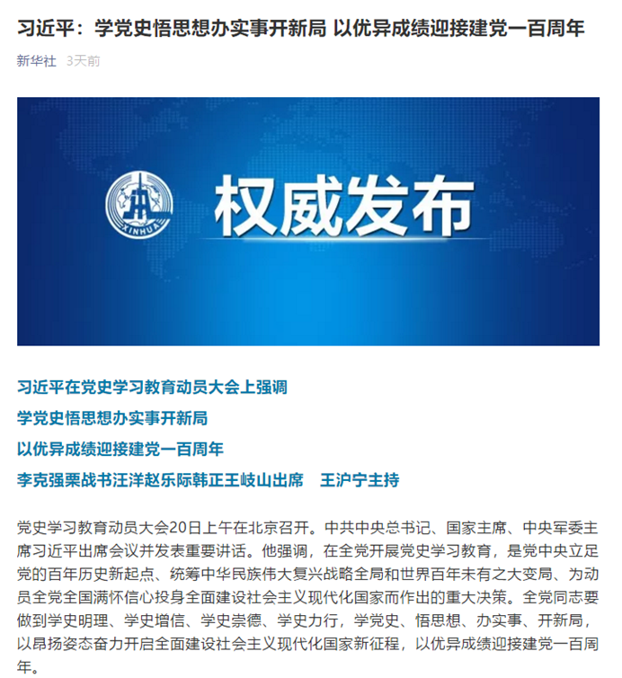 (支部全体党员学习领会习近平总书记在党史学习教育动员大会上的讲话精神)