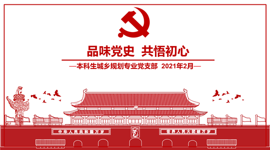 为积极响应2021年2月20日上午党中央开展全党党史学习教育的号召,本科生城乡规划专业党支部开展了主题为“品读党史,共悟初心”的党史专题学习活动。时值春节假期,支部通过线上开展此次活动,支部全体党员、发展对象和部分入党积极分子等90多人参加了此次组织生活。