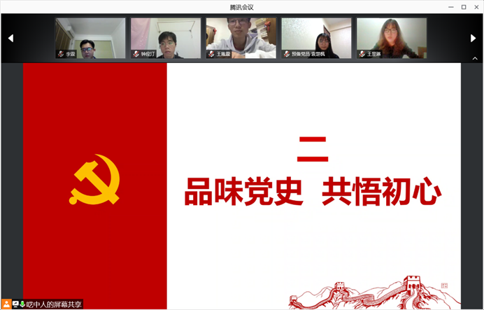 伴随着《国际歌》的音乐,此次活动拉开了序幕。活动伊始,党员同志们从“中国共产党成立及前期探索”、“抗战与解放”、“民族的新生与道路的探索”、“改革开放的春天”、“新时代的征程”五个阶段进行介绍,他们对每个阶段中具有代表性的事件进行了详细解读,带领大家学习了党史,进一步搭建党员同志的党史框架,让同志们进一步明确党从何而来,向何而去。