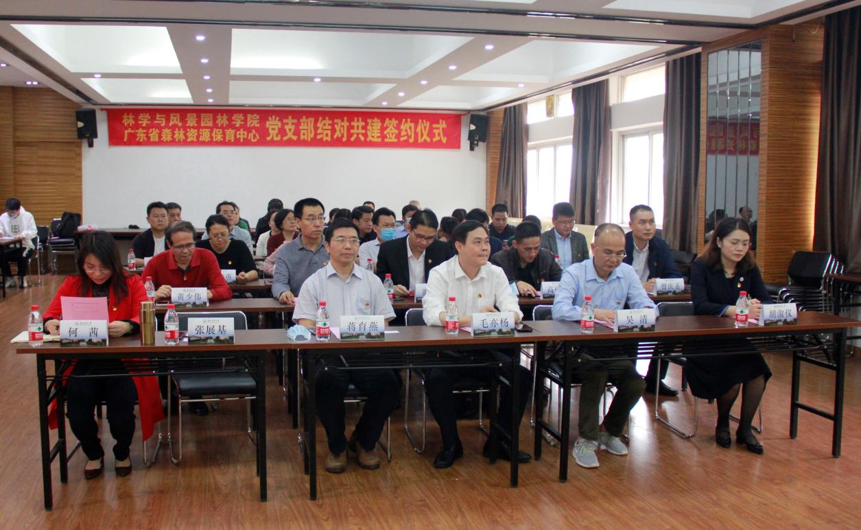 为深入学习贯彻习近平新时代中国特色社会主义思想和党的十九届五中全会精神,巩固深化“不忘初心、牢记使命”主题教育成果。39日下午,学院森林培育教研室教工党支部和广东省森林资源保育中心党支部结对共建签约仪式在院楼716举行。我校党委常委、副校长蒋育燕,学院党委书记张展基,党委委员何茜、林同、黄东、黄少伟出席了仪式。学院森培教工党支部和省森林资源保育中心党支部全体党员参加了仪式。仪式由学院党委书记张展基同志主持。