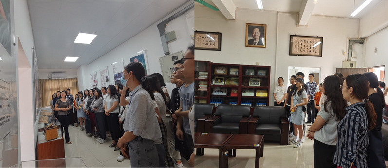 随后,党员同志们步行到农学院的卢永根同志办公旧址进行参观,进一步深入了解卢永根同志的生平事迹。作为华南农业大学的老校长,他这样定位自己:先党员,再校长,后教授。看着他日常使用的老旧的实验设备和朴素的办公环境,每一位党员都感受到他作为共产党员的纯粹和作为科学家的奉献精神。倾听着卢永根同志的生平事迹及入党初心故事,师生党员深刻感受到了卢永根同志作为共产党员的坚定信仰,铭记他的伟大事迹。