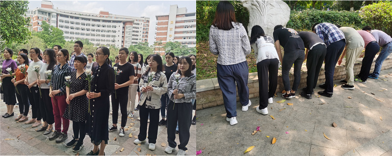 为了表达最崇高的敬意和最真挚的缅怀之情,师生党员首先来到邵阳湖畔的院士雕塑广场集体瞻仰卢永根同志塑像。仪式由育种教研室党支部书记李培同志主持,在聆听卢永根同志为祖国教育事业奉献事迹后,全体党员向卢永根同志鞠躬致敬并献上鲜花,以示深切缅怀。