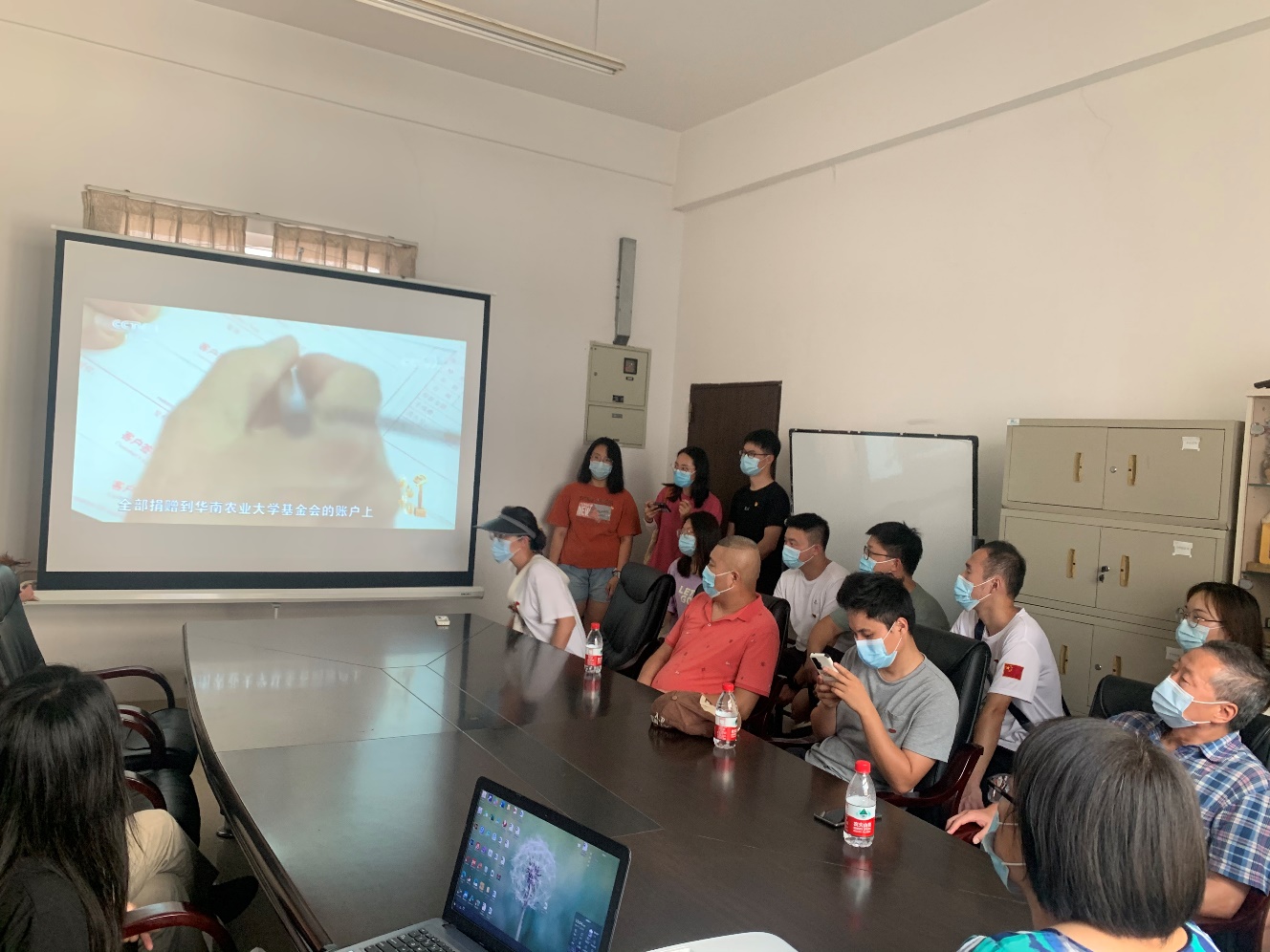 随后,全体师生党员移步至农学院526会议室共同观看了卢永根院士先进事迹的视频。通过视频学习,激励了在场党员们要以卢永根院士为精神榜样,永葆共产党人的政治本色,把榜样的可贵精神和优良作风内化于心、外化于行。