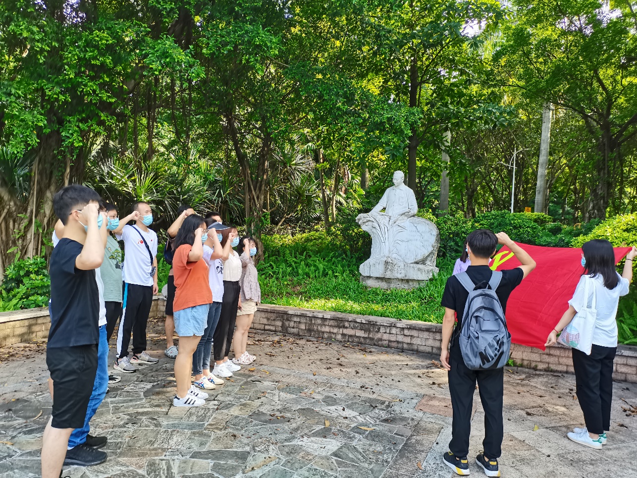 活动的最后,党员们来到了院士广场,在对卢永根院士雕像的瞻仰下,农艺与种业研究生党支部党员们重温了入党誓词。