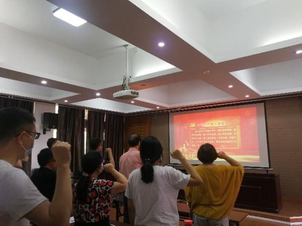 活动第一项内容是由黄少伟同志带领全体党员重温入党誓词,回顾入党的动机,激发党性意识,坚定全心全意为人民服务、为党和人民的事业奋斗终身的信念。