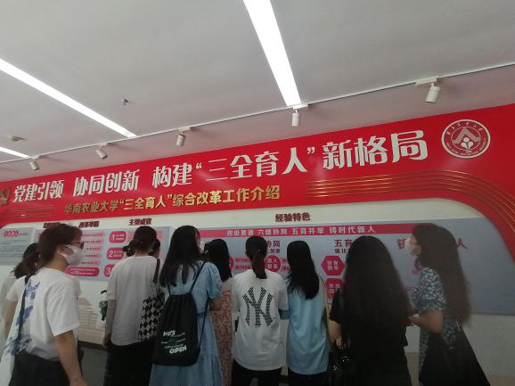 对党的历史有了更深刻地认识之后,大家的参观目光聚焦在本校思政体验馆的“十大育人”展示墙上。大家了解了学校“十大育人”的项目实施及成果,通过综合改革工作介绍与优秀案例分析,对学校“三全育人”取得的成效有进一步深刻的认识。