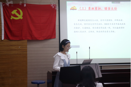 活动第三项,由党支部、团支部优秀党团员代表与同学们做事迹分享与交流。2018级黄潇、连凯铭、刘祯和孙胡莲四位同学,围绕思想成长、入党经历、学业发展、生涯规划和心理健康等方面内容,与同学们进行了分享交流。他们以自身经历为成员们答疑解惑,衷心祝愿同学们不忘初心、砥砺奋进。