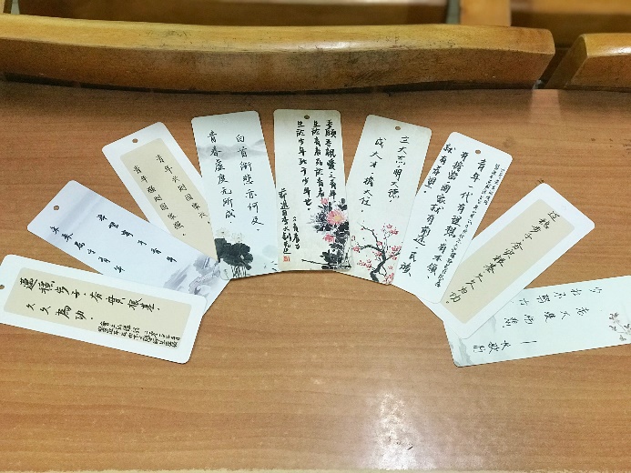 活动接近尾声,同学们在书签上写下学习中深有感触的话语或学习心得,以诗文抒怀,以笔墨明志,励志不负韶华,勇敢担当。