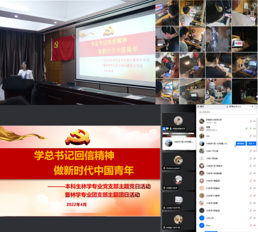 为进一步提升党支部组织力,发挥战斗堡垒作用,同时贯彻落实学校《关于在师生党支部中开展“迎接学习贯彻党的二十大‘7+1’主题活动”的通知》,日前,本科生林学专业党支部、团支部开展了以“学总书记回信精神,做新时代中国青年”为主题的结对共建活动。结合疫情防控需求,本次活动采取“线上+线下”的形式举行。本科生林学专业党支部成员以及林学专业各团支部部分团员参加了在林风学院716报告厅开展的线下活动,其余同学通过观看线上直播的方式参加了学习。活动由党支部副书记汤楚晴同志主持。