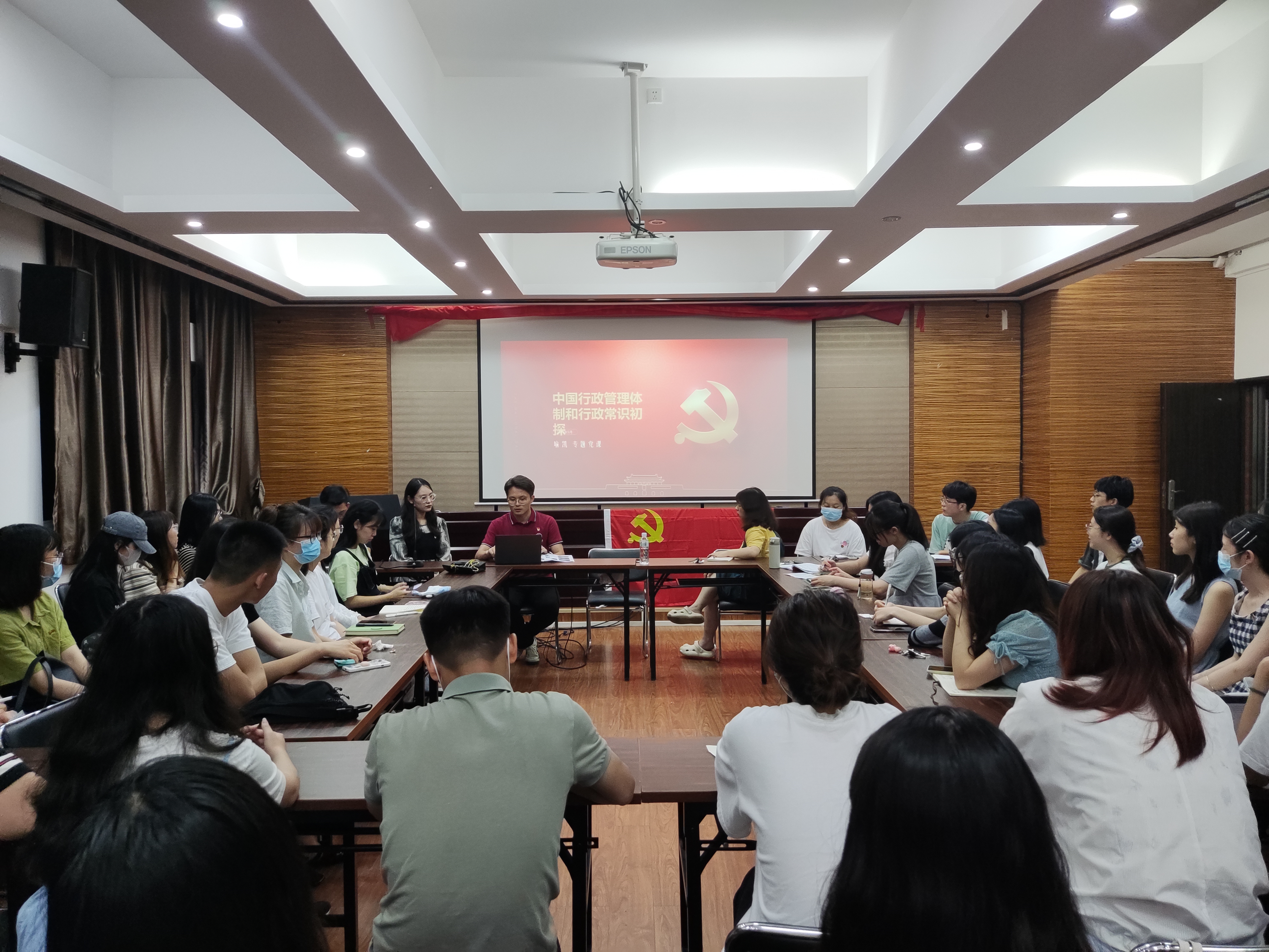 随后,农艺与种业研究生党支部、风景园林(设计)研究生党支部书记喻凯老师以“中国行政管理体制和行政常识初探”为题讲授专题党课,详细介绍了“行政相关概念”、“中国历代典型行政体制”、“中国当代行政体制”和“考公所需了解的常识”,与会党员、团员积极参与讨论提问。