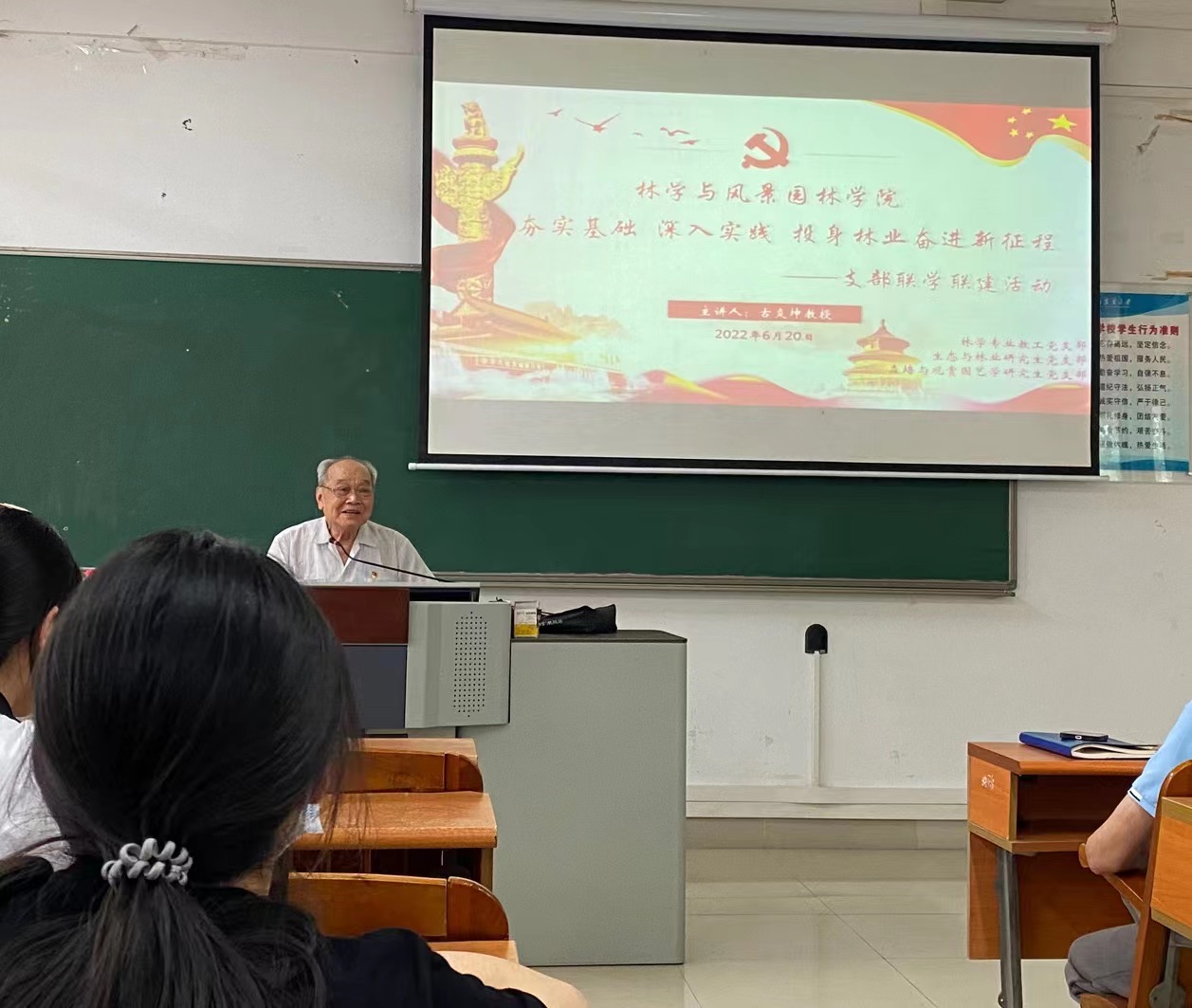 2022年6月20日下午,学院邀请了校“优秀共产党员”古炎坤教授为林学专业教工党支部、生态与林业研究生党支部及森培与观赏园艺研究生党支部全体师生党员上了一堂精彩生动的专题党课。