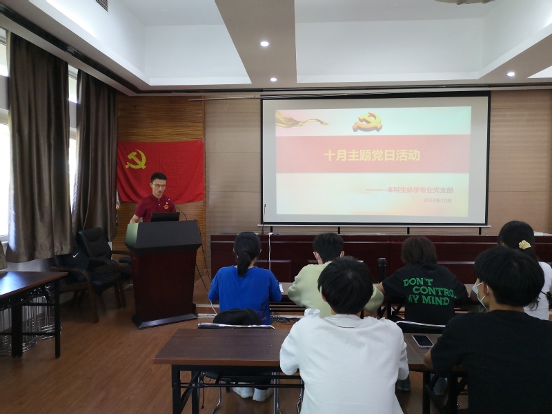 为持续加强党支部政治理论学习,2022年10月22日下午,本科生林学专业党支部在学院716会议室开展了以学习《习近平谈治国理政》(第四卷)为主题的党日活动。党支部书记张东文老师、全体党员同学、党支部第十二期发展对象参加了活动,活动由党支部副书记葛庆宇同志主持。