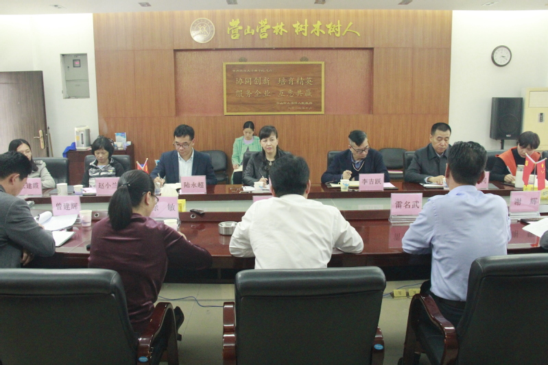 On February 27, Huang Zhongqiang, a member of the Party group and deputy director general of Huizhou Forestry Bureau, Lei Mingwu, a member of the Party group and chief engineer of Huizhou Forestry Bureau, and a group of 11 people came to our institute to have an exchange and Discussion on further promoting the cooperation between our institute and Huizhou Forestry Bureau in administration, production, learning, research and application. Zhao Feng, Secretary of the Party committee, Li Jiyue, President, Lu Yongchao, deputy secretary of the Party committee, Lin Tong, vice president and experts of related disciplines attended the symposium.