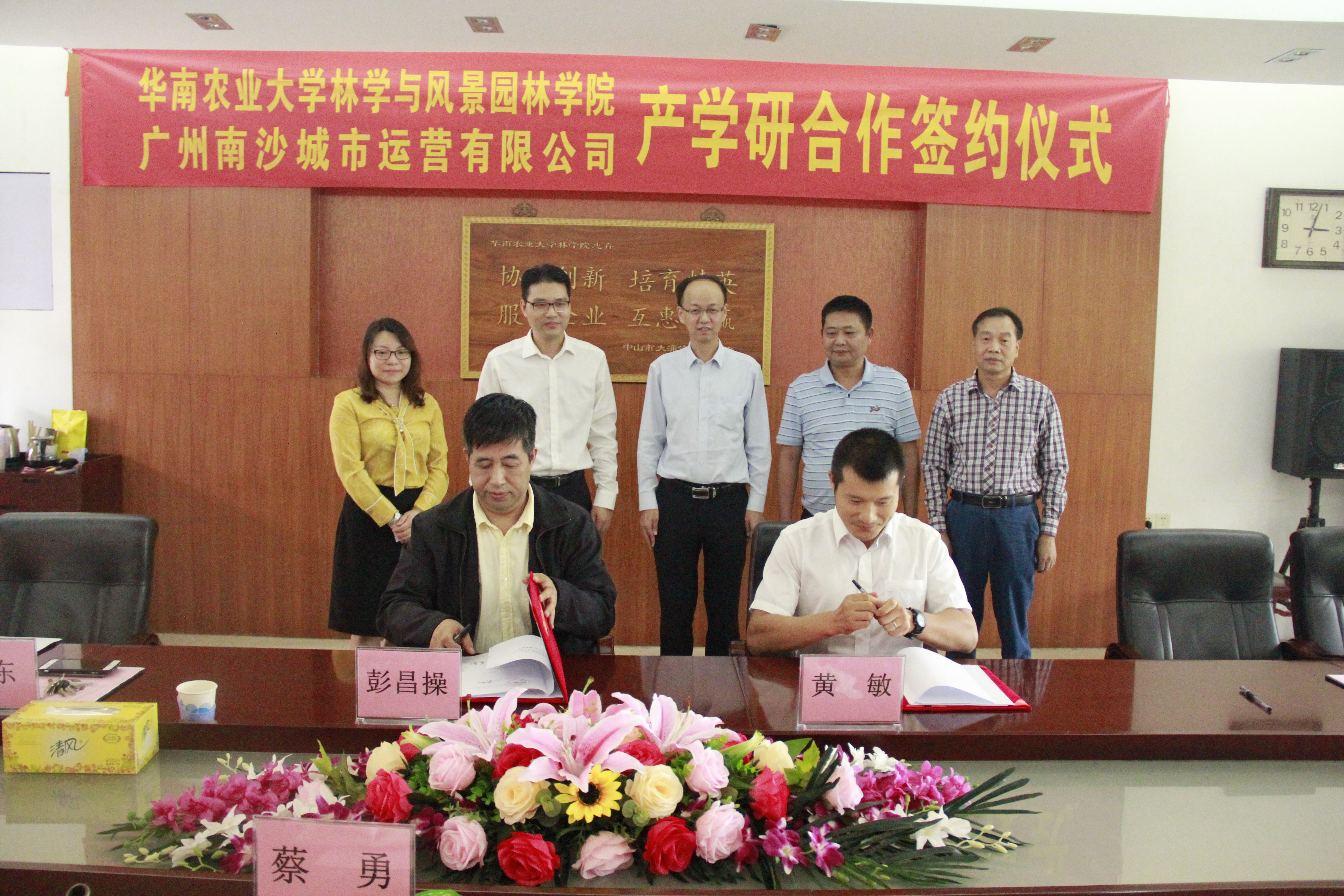 On the afternoon of October 30, the signing ceremony of the framework agreement on production university research cooperation of Guangzhou Nansha Urban Operation Co., Ltd., a school of forestry and landscape architecture of South China Agricultural University, was held in the 620 conference room of our college. Huang Min, member of the Party committee and Deputy General Manager of Guangzhou Nansha Urban Construction Investment Co., Ltd., and Cai Yong, deputy general manager of Guangzhou Nansha Urban Operation Co., Ltd., came to the college to discuss cooperation and sign a contract. President Peng Changcao, relevant leaders and experts attended the signing ceremony.